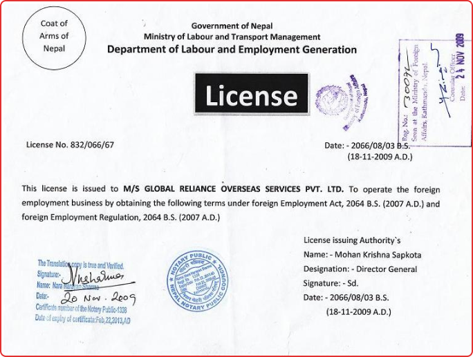 Every country has its own rules and regulations for supplying workers to overseas countries. We are all bound to carry out these rules and regulations of the labor Department of our government strictly.